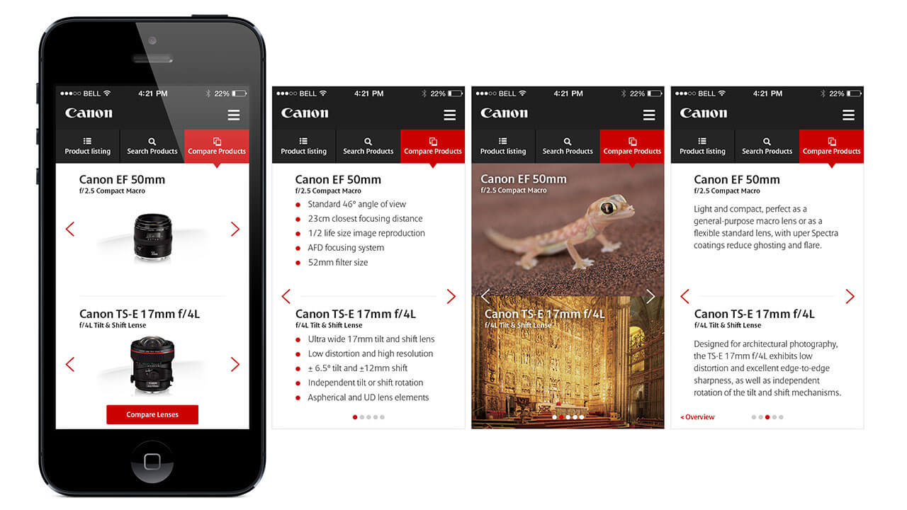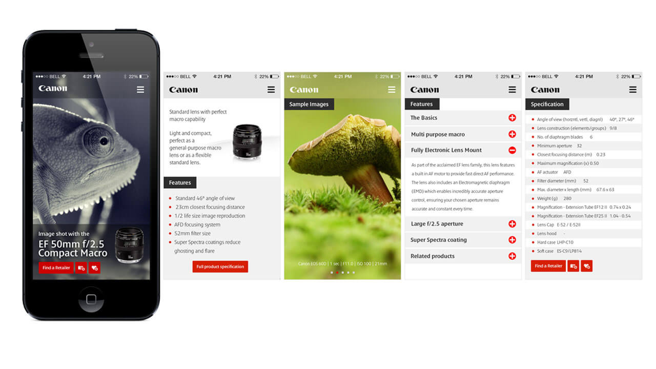 Served as one of the Designers on a pitch for Canon, the renowned Japanese camera manufacturer. The proposed informative website enabled users to quickly compare products by key features, delve into granular technical specifications, and locate nearby retailers.